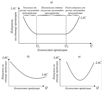 Графически это можно проиллюстрировать кривой долгосрочной издержек (long – run average cost – LAC). LAC включает в себя в каждый момент времени все возможные краткосрочные средние издержки (АТС) и соприкасается с ними.
